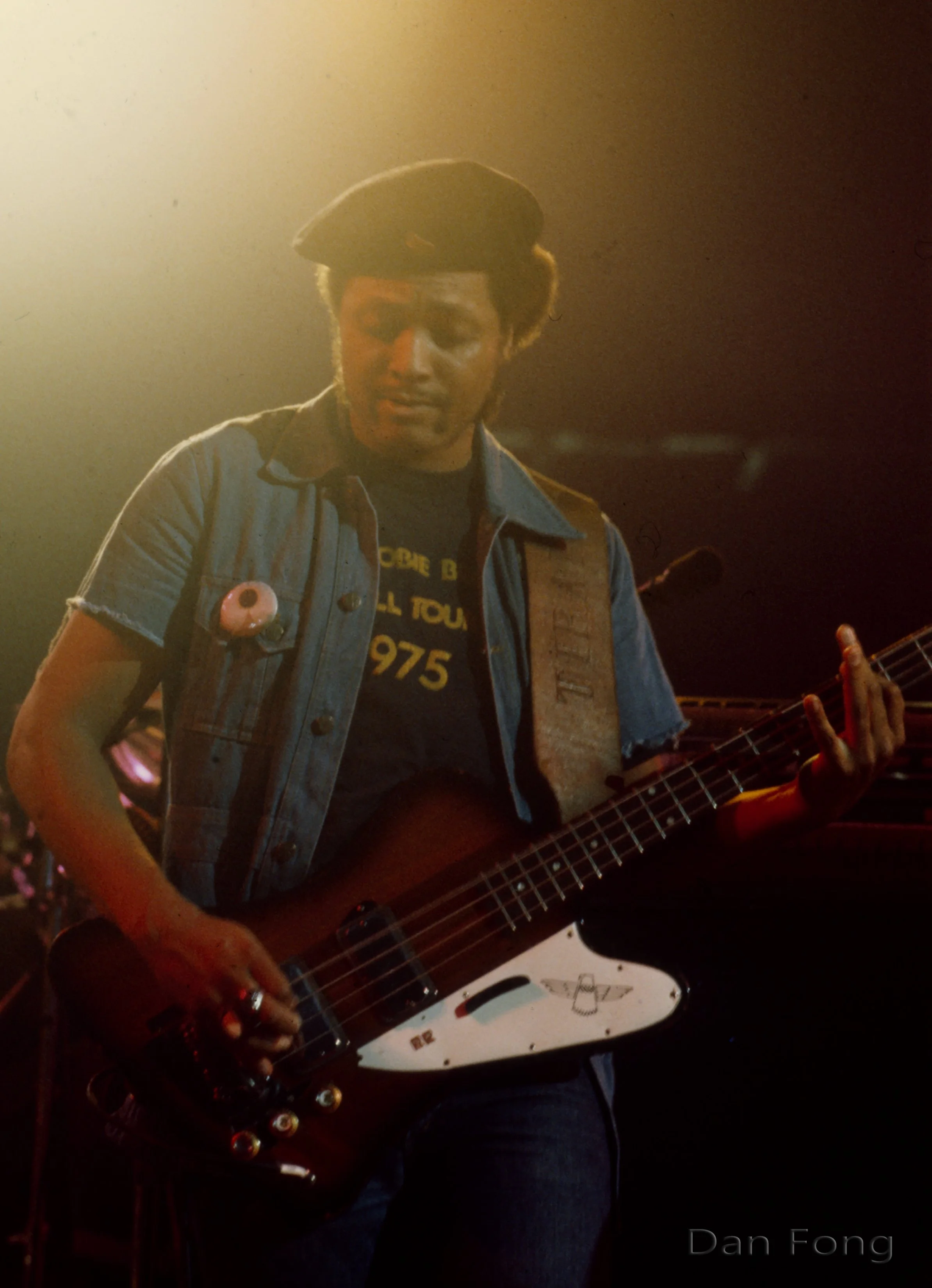The Thunderbird was low and loud. Just how I like it! The mahogany body with the walnut neck through made for good sustain. Unfortunately, the tone of the Thunderbird didn't end up matching Micheals (McDonald) keyboard. When a piano player is playing the bass notes with his left hand, they don't sound super low. You can hear the notes clearly all the way down to the bottom, but with the Thunderbird I couldn't do that because it would mask what Mike was playing with his left hand. I cut my hands so much on the Thunderbird bridge that after the fall tour of 1975 I moved on to another bass. I switched it out and went to the Precision and my custom Jazz bass. Both of these basses sounded finer and fit Mike's keyboard playing much better!