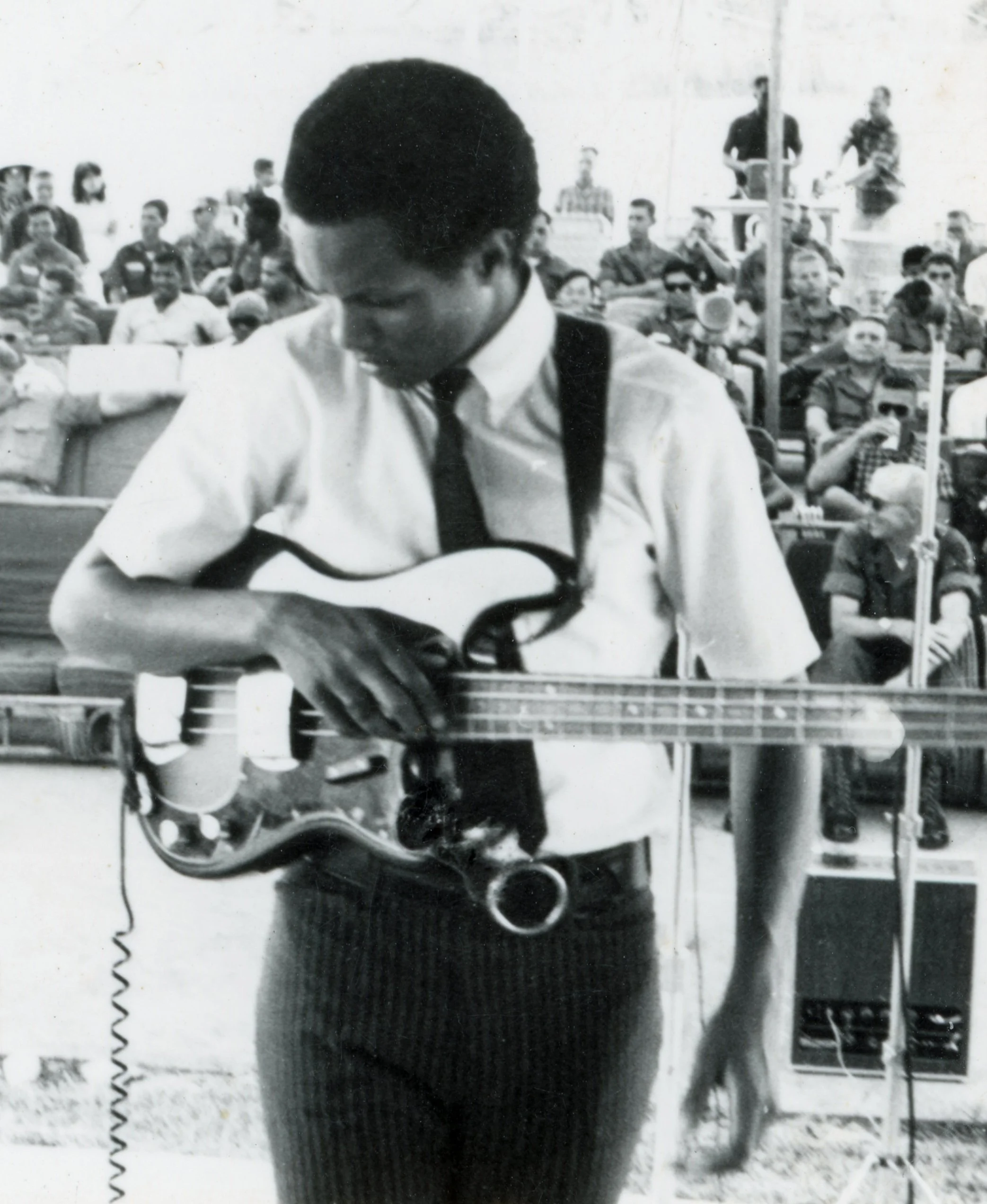 My very first bass was a 1960 Teisco Kingston Short Scale Bass. My parents had originally bought me a guitar from Sears and Roebuck, but I wasn’t learning how to play it fast enough. My friend told me I should try bass instead. So I asked my parents if they could trade it in for a bass. The Teisco had one pick up and I had no idea how to tune it. The only way to describe it is, it sucked. It wasn’t well made, so it just didn’t sound good. I didn’t have it for very long.